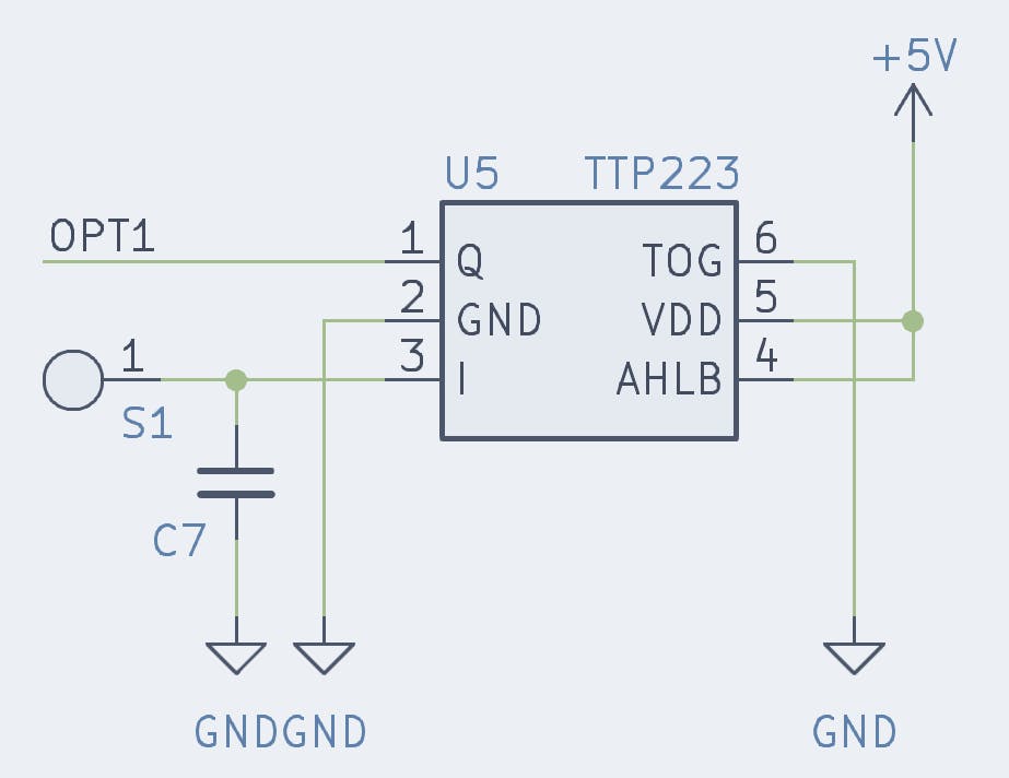 For handle the touches, the idea is to use some TTP223. This is very small (SOT-23-6L package).